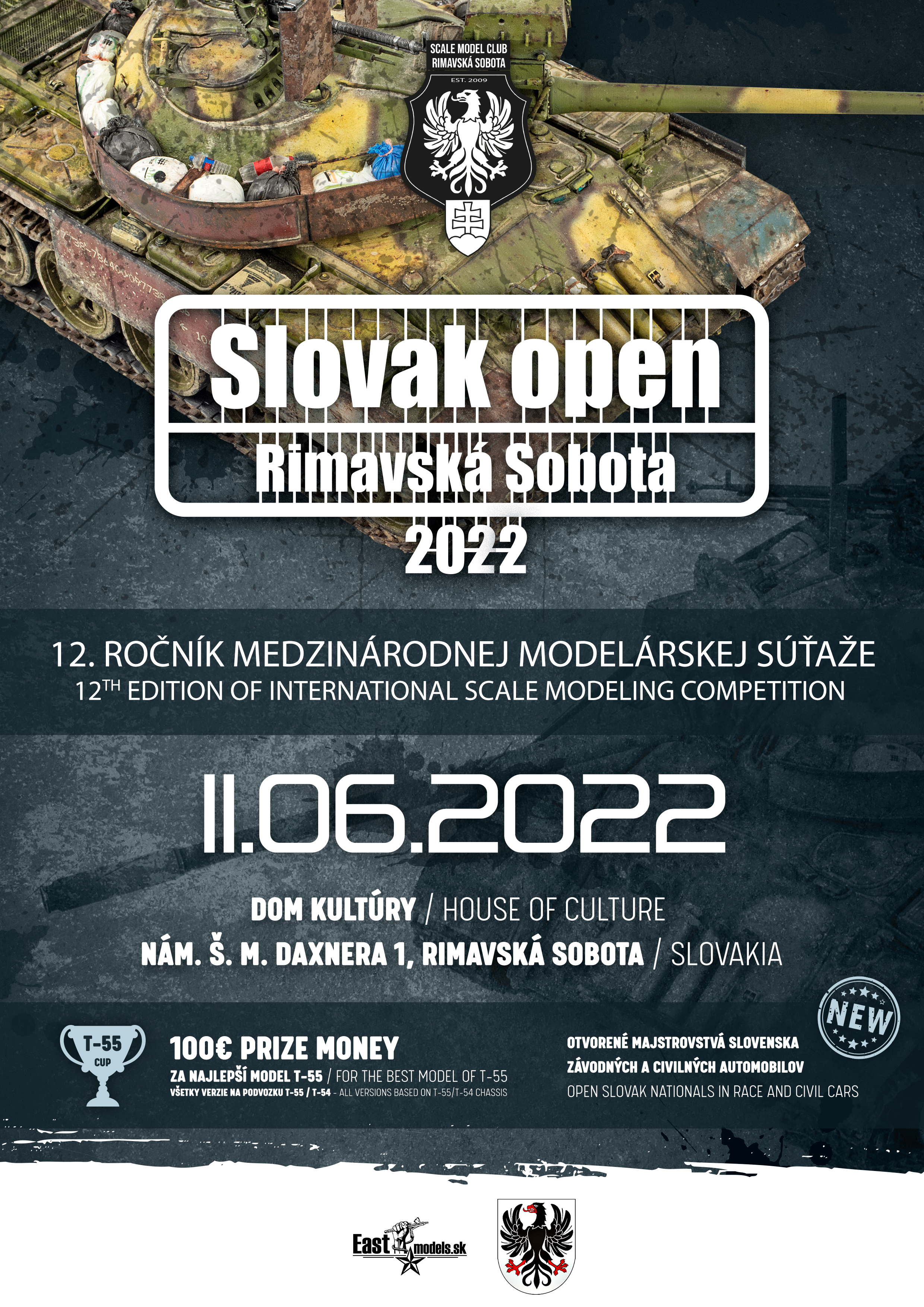 19. január 2022 ... Ján Moravčík ... po dlhšej Covidovej odmlke tu máme čerstvé informácie od organizátorom Slovak Open v Rimavskej Sobote. Súčasná situácia s opatreniami a neistota v ich uvoľňovaní donútili organizátorov presunúť termín súťaže na 11. jún 2022. Veríme, že všetko dobre dopadne a súťaž prebehne v štandardnom režime na plné obrátky. Organizátori usilovne pracujú na prípravách a tešia sa veľké stretnutie s modelármi po dlhej dobe. Aktuálne informácie budeme pridávať postupne.