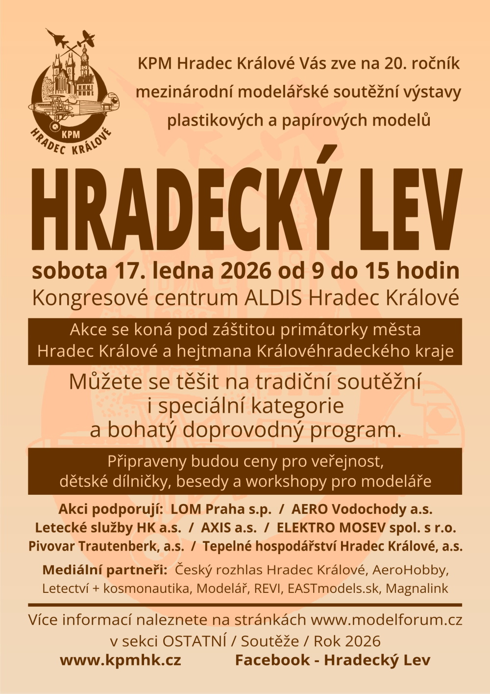 23. december 2025 ... Roman Michalko ... necelý mesiac zostáva do súťaže Hradecký Lev, ktorý sa opäť uskutoční v Kongresovom centre Aldis v Hradci Králové. Po minulých mimoriadne úspešných ročníkoch na modeárov čaká 20. ročník súťaže a organizátori sľubujú veľké veci!