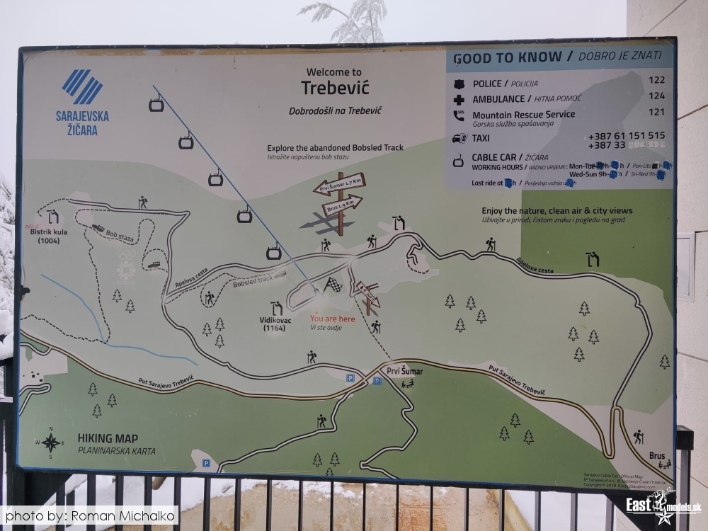 Na vrchole Trebević, ktorý sa týči vo výške niečo vyše 1000 metrov, sa nachádzajú aj bývalé olympijské športoviská pre boby a sane.